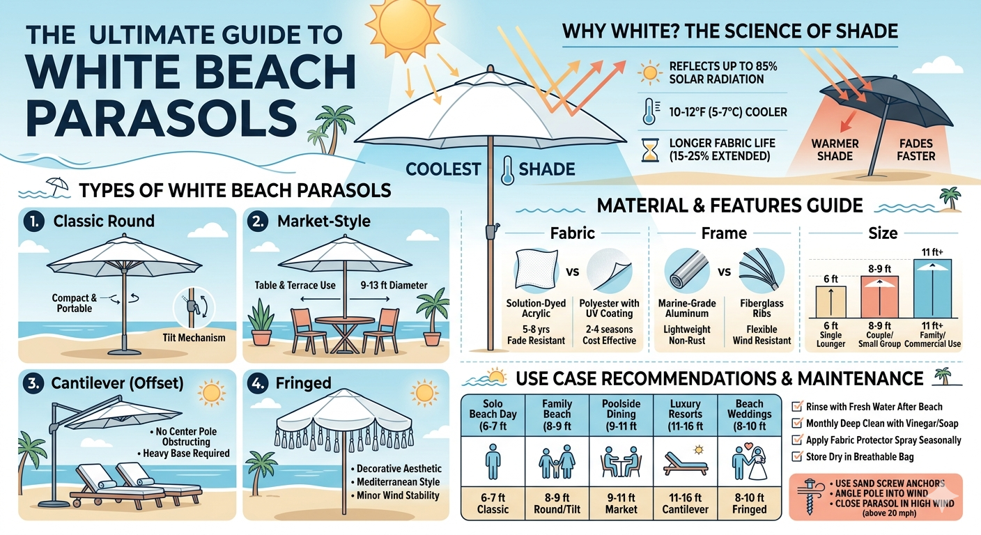 White Beach Parasol Størrelses- og Stilguide efter Use Case