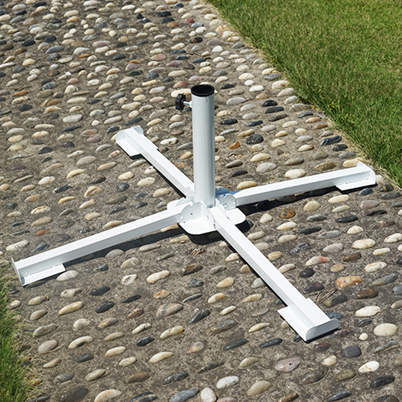 Paraplyen Cross Base UA1924 vedtager et enkelt og elegant krydsformet design, og den overordnede struktur er stabil. Det kan effektivt sprede vægten af ​​paraplypolen og sikre, at parasolen forbliver stabil under alle vejrforhold. De fire understøttelsesarme på basen er jævnt fordelt for at danne en stabil understøttelsesplatform, som effektivt kan forhindre parasolen i at vippe i stærk vind.